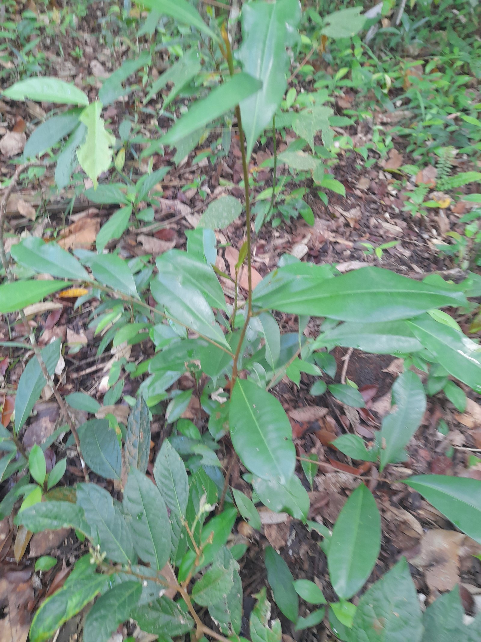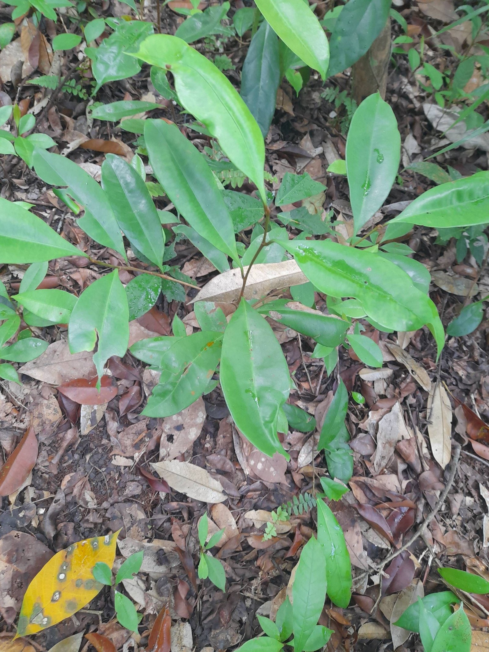 Jenis daun: Tunggal, tersusun spiral atau terkumpul di ujung ranting. Bentuk: Elips hingga lonjong (elliptic-oblong), panjang 7–25 cm, lebar 3–10 cm. Ujung: Meruncing (akuminata); pangkal: membulat atau membaji. Permukaan atas: Licin, mengilap, hijau tua; bawah: lebih pucat, kadang berbulu halus. Tulang daun: Menyirip, menonjol di sisi bawah daun. Petiol (tangkai daun): Panjang sekitar 1–3 cm.