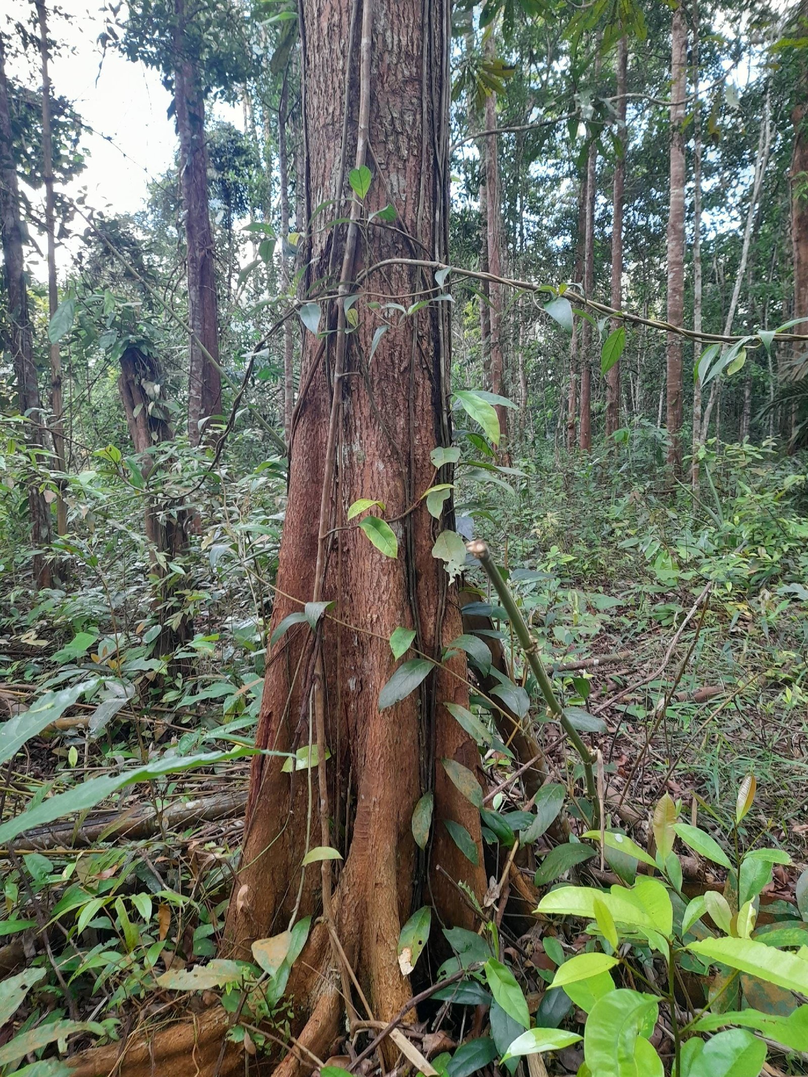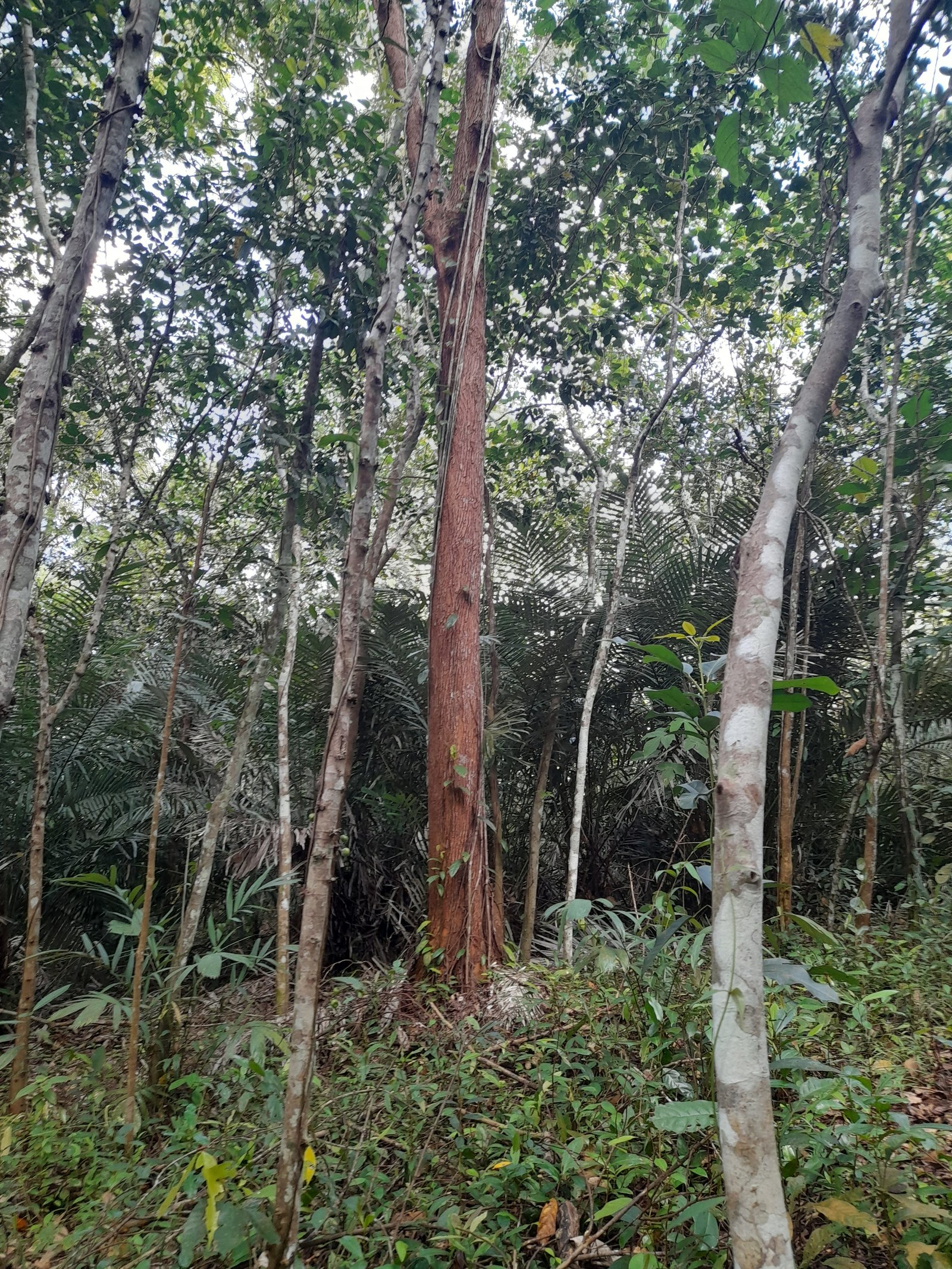 a. Menempati lapisan kanopi tengah hingga atas pada struktur hutan.