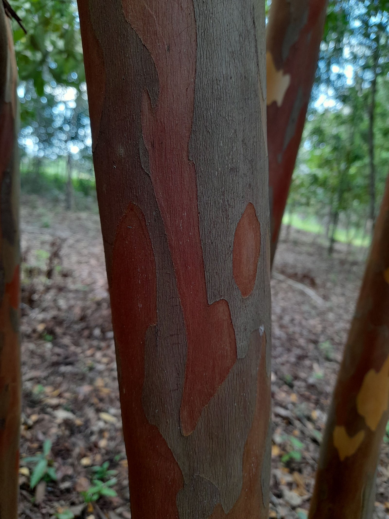 Warna batang muda kemerahan atau cokelat kemerahan. Batang tua (kulit luar) cokelat keabu-abuan, kadang mengelupas atau bersisik. Kayu bagian dalam (teras kayu): Umumnya merah tua atau cokelat kemerahan. Kayu padat dan tahan lama, termasuk dalam kelompok kayu keras tropis.